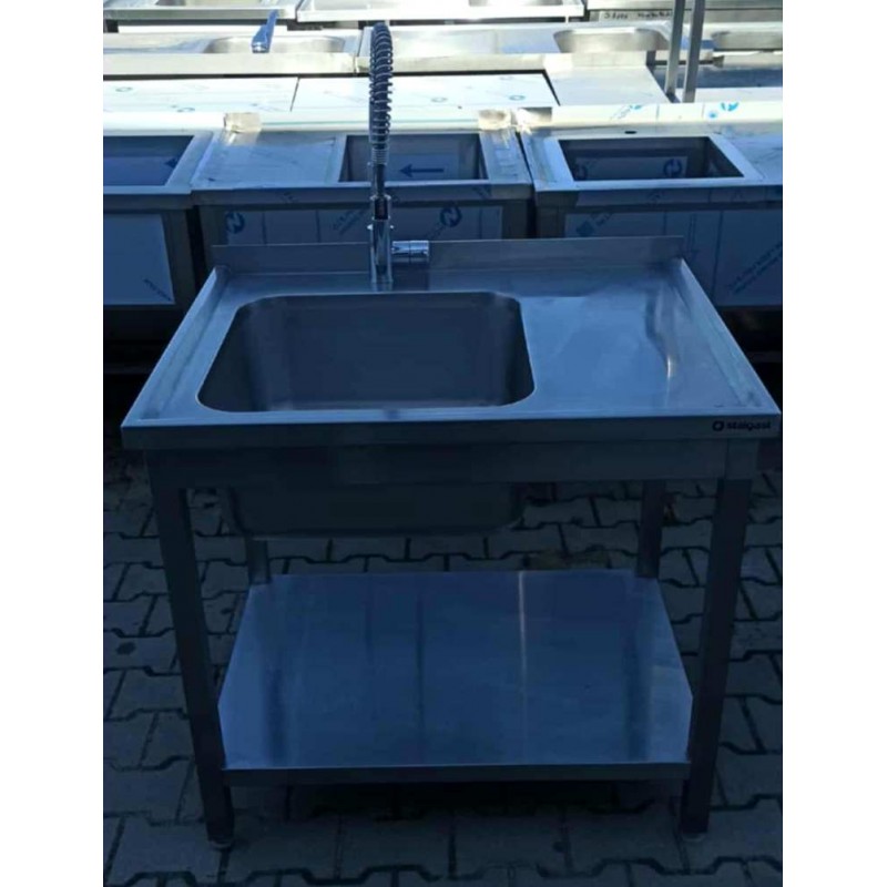 Zlew 1 Komorowy z Półką -STALGAST- 90/70/85 cm - S 1203.O