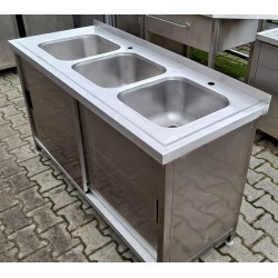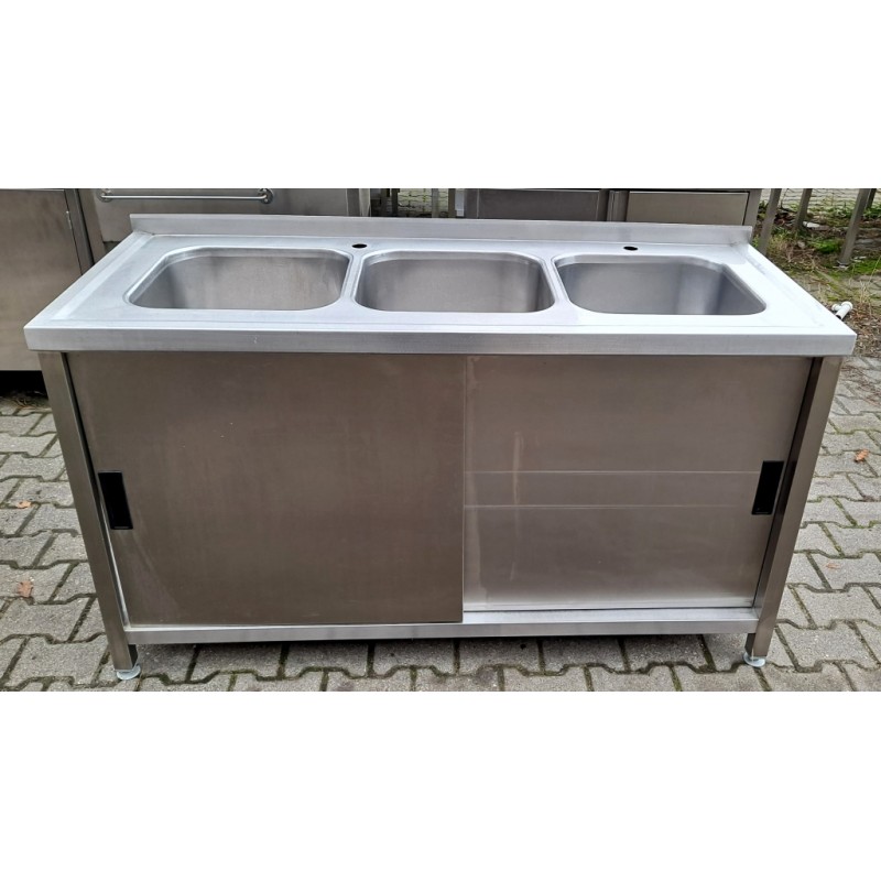 Zlew 3 Komorowy z Szafką - Drzwi Suwane - 150/60/85 cm - M.1207 N